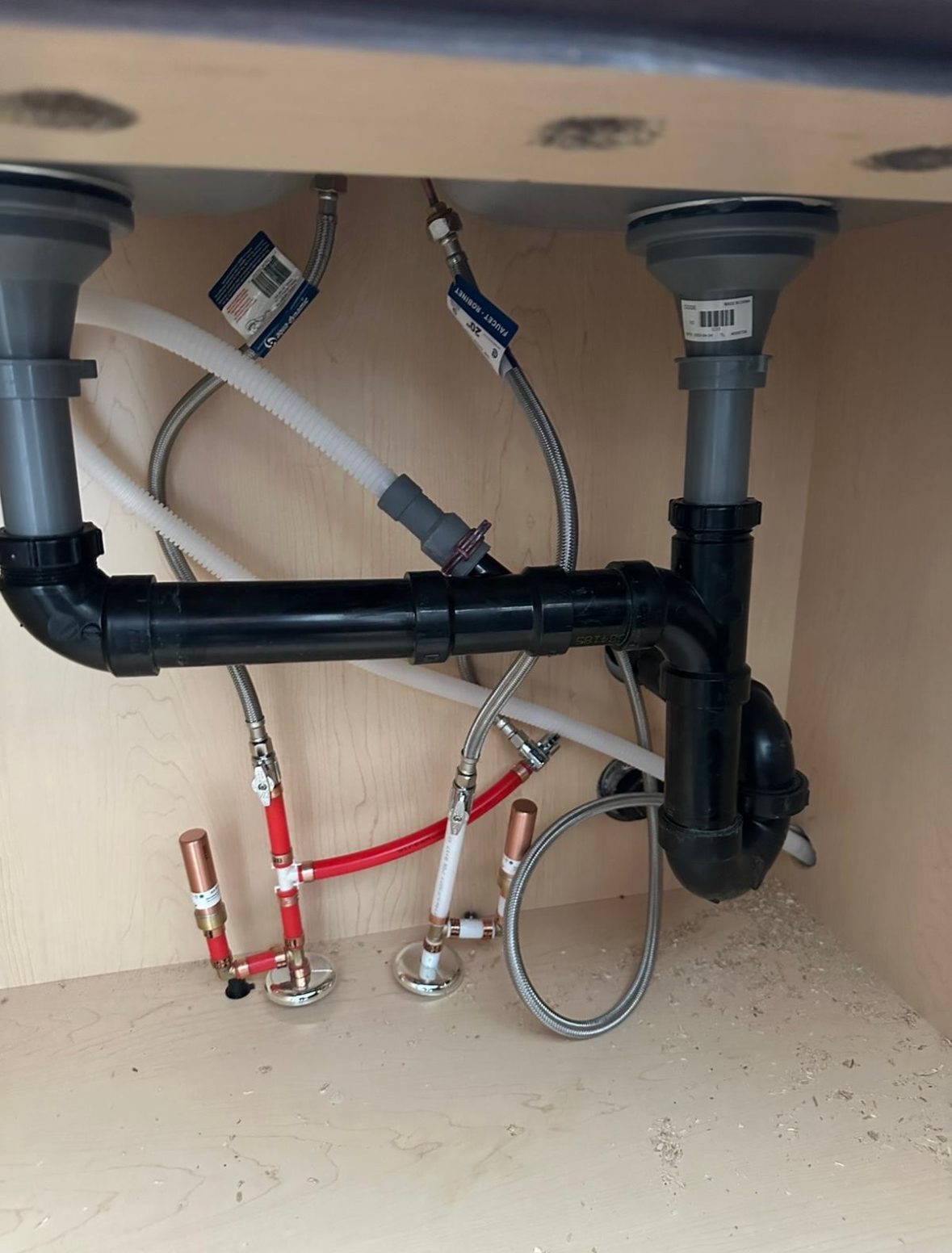 Garbage disposal installation, under-sink plumbing, dishwasher connections, and kitchen sink replacements.